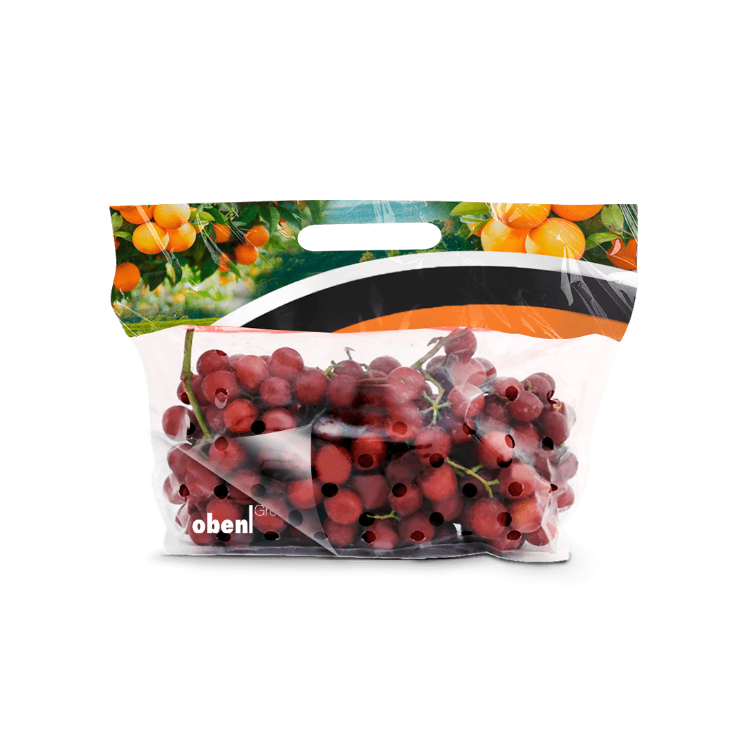 Filmes para sacos de frutas e legumes com selagem com fundo sanfonado, zíper e selagem com linha.